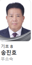 → 법치와 보수 통합 강조. 문장 길고 진지한 어조로 전통 보수층 겨냥. - 송진호 후보 (기호8, 무소속)
